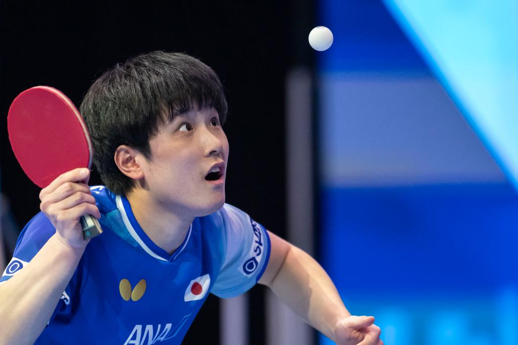 26日、男子シングルス決勝に臨む張本智和。(ロンドン=新華社配信)
