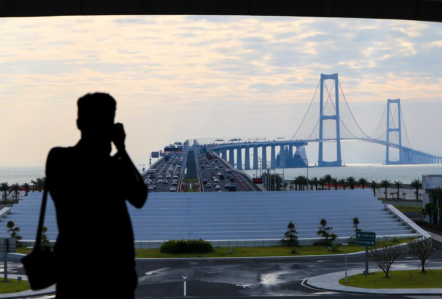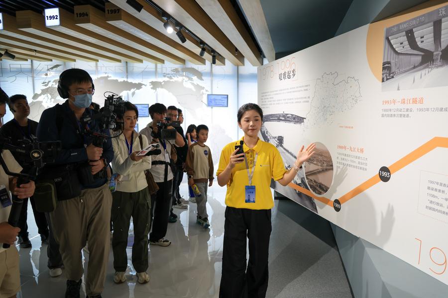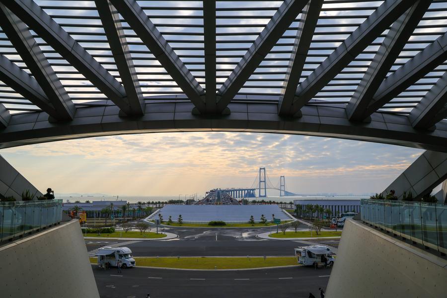 【新華社深圳10月27日】中国広東省の深圳、中山両市を橋や海中トンネルで結ぶ「深中通道」の西人工島で25日、試験的な観光運営が始まった。第1陣として約100人のメディア関係者と観光客が訪れた。