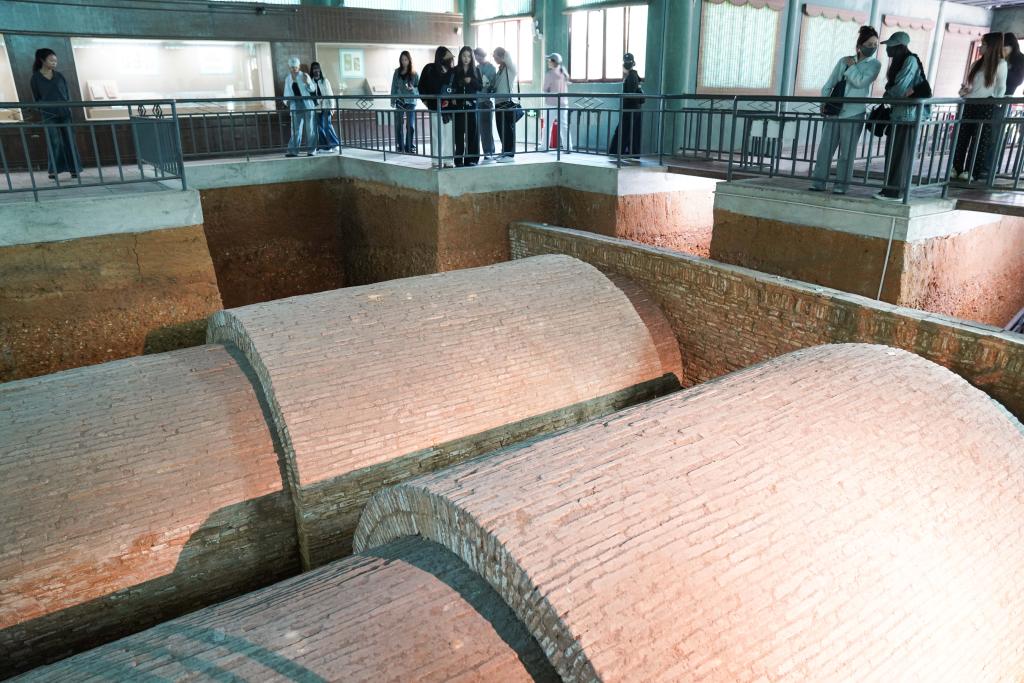 21日、合浦漢代文化博物館の漢墓保護展示ホールを訪れた観光客。(合浦=新華社記者/周佳誼)