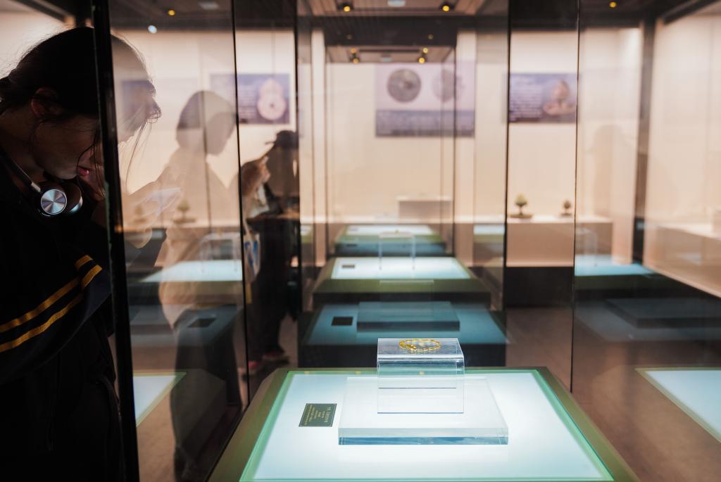 21日、合浦漢代文化博物館が収蔵する、漢代の装身具。(合浦=新華社記者/周佳誼)