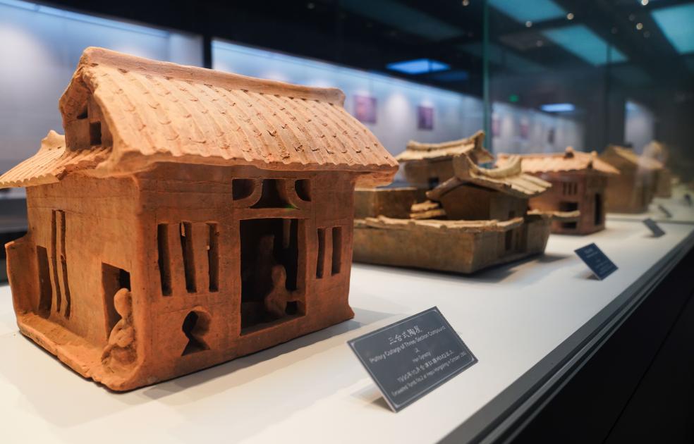 21日、合浦漢代文化博物館が収蔵する、建物をかたどった副葬品「陶屋」。(合浦=新華社記者/周佳誼)