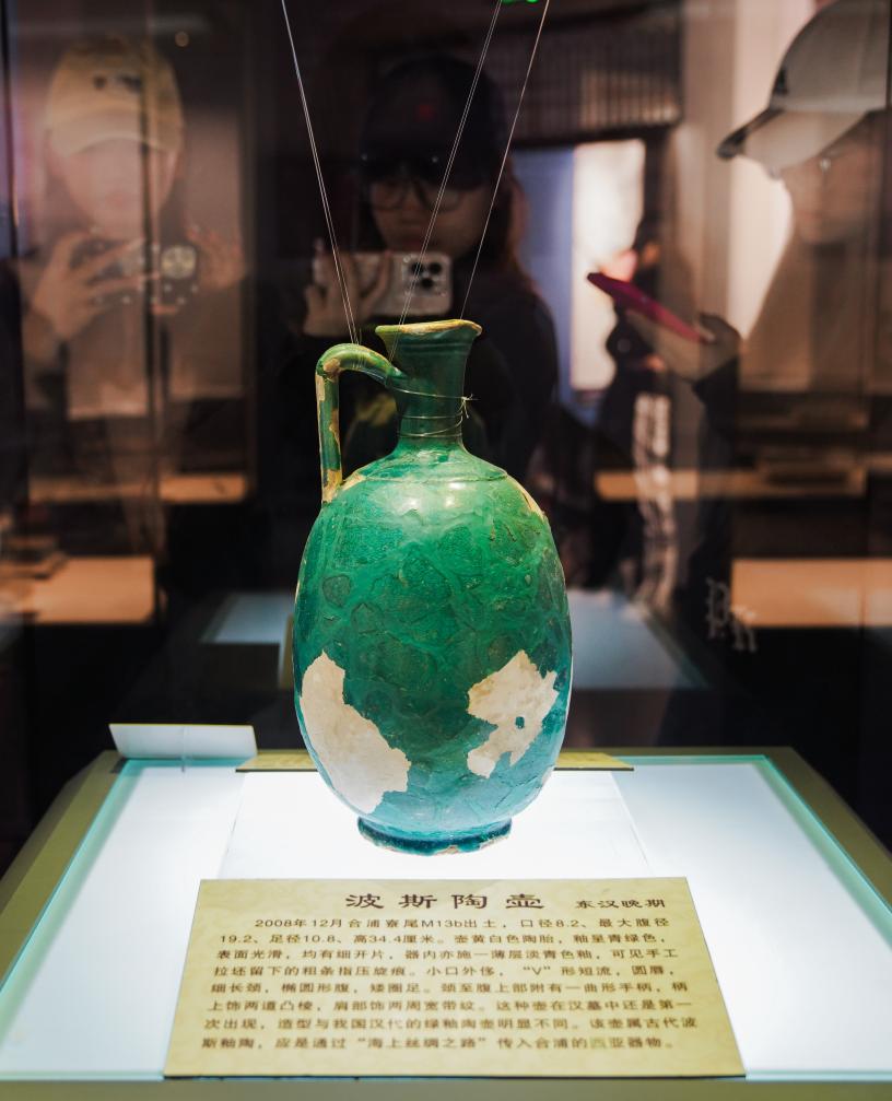 21日、合浦漢代文化博物館収蔵のペルシャ壺。(合浦=新華社記者/周佳誼)