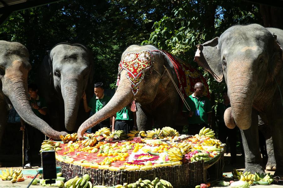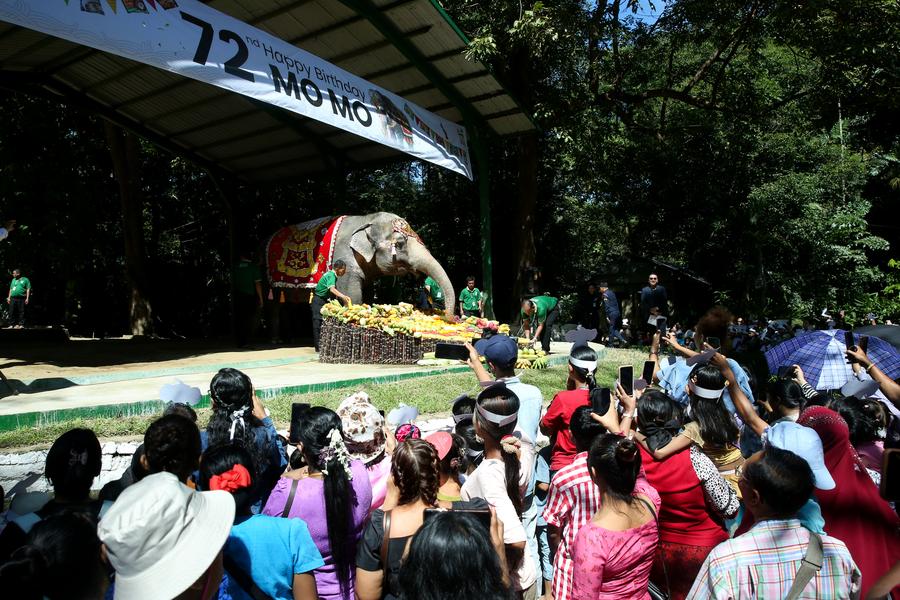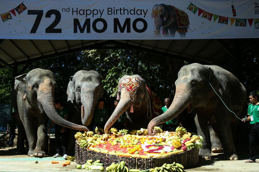 【新華社ヤンゴン10月28日】ミャンマーのヤンゴン動物園で26日、72歳を迎えた雌のアジアゾウ「モモ」の誕生日会が開かれた。