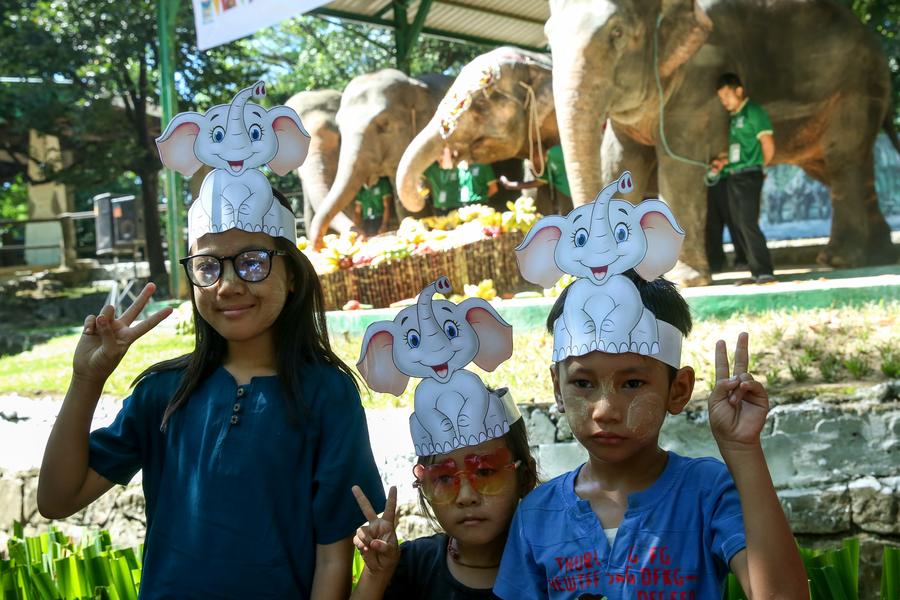 26日、ヤンゴン動物園でモモの誕生日会に参加した子どもたち。(ヤンゴン=新華社配信)