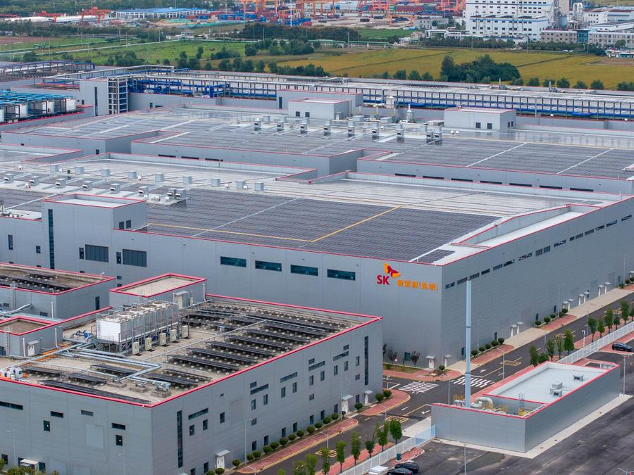 中韓(塩城)産業パークにあるSKグループ新エネルギー2期の車載電池生産拠点。(10月16日、ドローンから、塩城=新華社記者/李博)