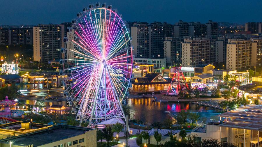 塩城KK−PARK東大門歓楽街。(10月16日、ドローンから、塩城=新華社記者/李博)