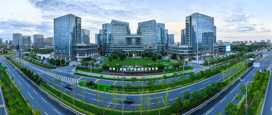 中韓(塩城)産業パークの未来科技城。(10月16日、パノラマ写真、ドローンから、塩城=新華社記者/李博)
