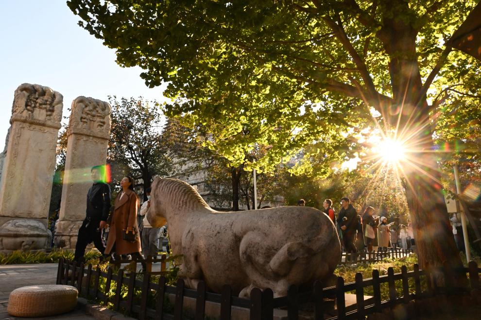 26日、北京石刻芸術博物館を見学する観光客。(北京=新華社記者/陳鍾昊)