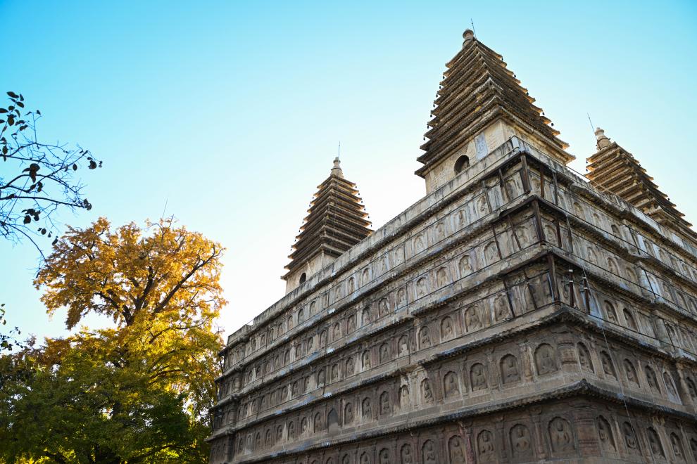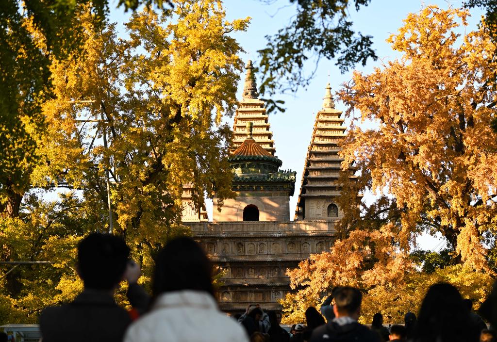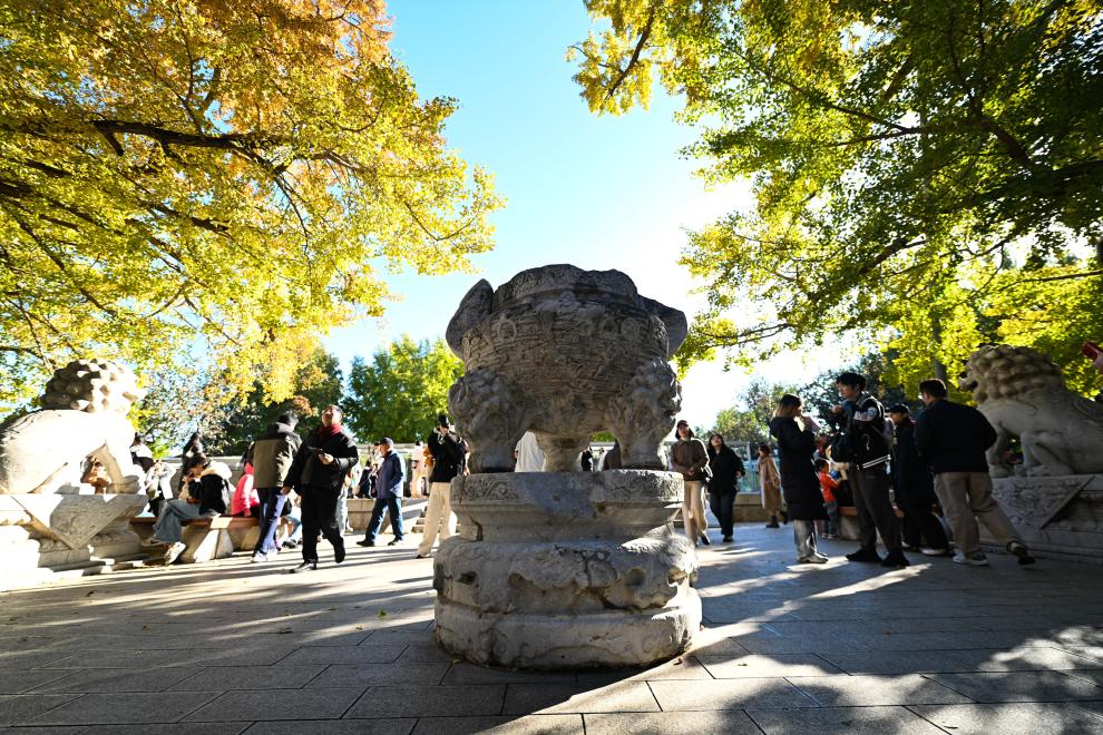 【新華社北京10月28日】中国北京市の五塔寺境内にある北京石刻芸術博物館で、イチョウなどの黄葉が進んでいる。石造りの文化財が鮮やかな色彩の中にたたずみ、多くの観光客を引き付けている。