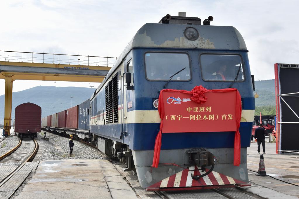 西寧を出発するカザフスタン・アルマトイ行きの中亜班列。(2024年6月30日撮影、西寧=新華社配信)