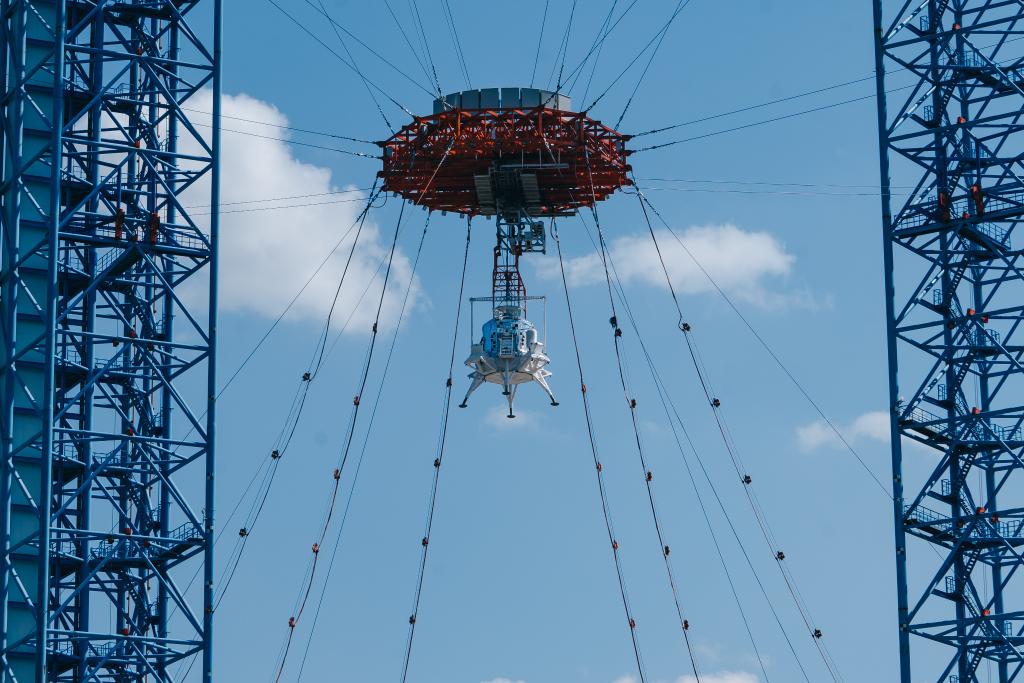 地球外天体着陸試験場で検証試験を受ける月面着陸機「攬月」。(資料写真、懐来=新華社配信/張斌)