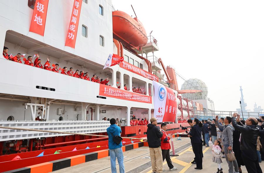 【新華社上海11月1日】中国自然資源部が組織した第42次南極科学観測隊が1日、中国上海市を出発し、南極へ向かった。今回の調査は国家の需要と世界の先端技術をめぐり、秦嶺(しんれい)基地の施設整備とシステムの調整を進める。内陸部の深い氷層にある湖で初めて科学掘削試験を実施し、3千メートルを超える氷層のサンプル採取を行う。6輪駆動車「雪豹」やTHT550全油圧高出力けん引装置などを現場で検証する。