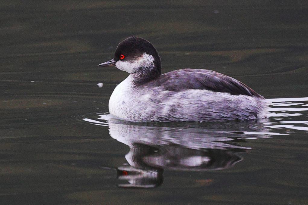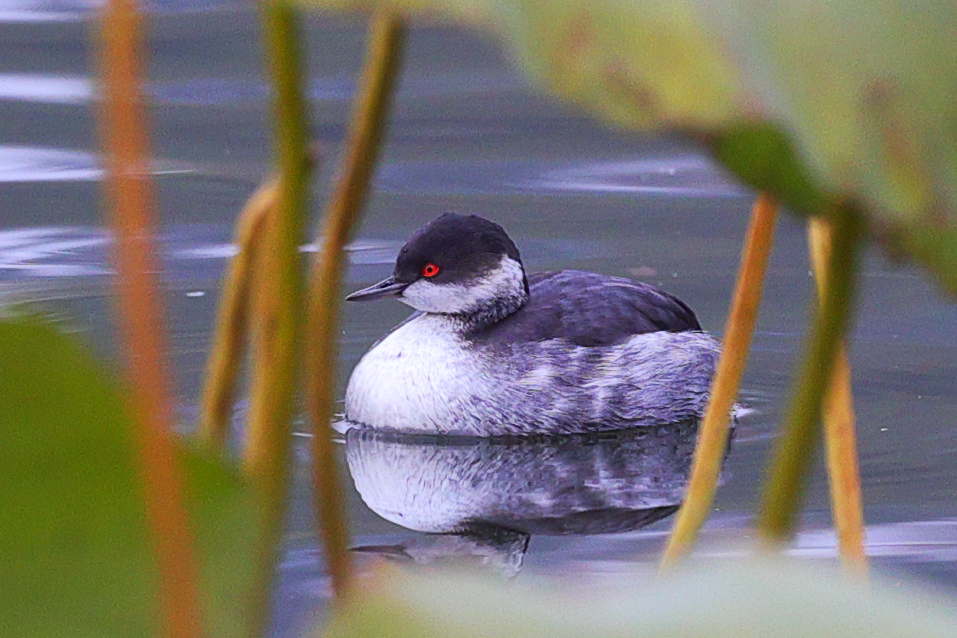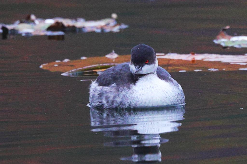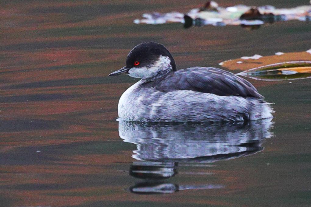 10月30日、北京市の玉渊潭公園で撮影したハジロカイツブリ。(北京=新華社配信/郭連友)