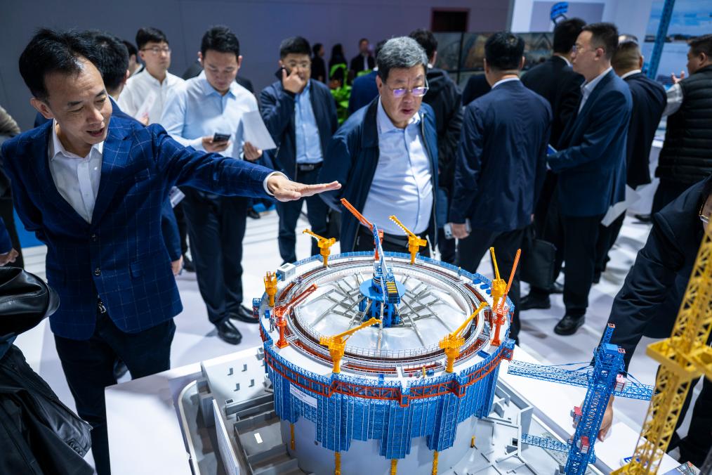 10月31日、2025国際(武漢)スマート建設産業博覧会で展示を見る人たち。(武漢=新華社記者/伍志尊)