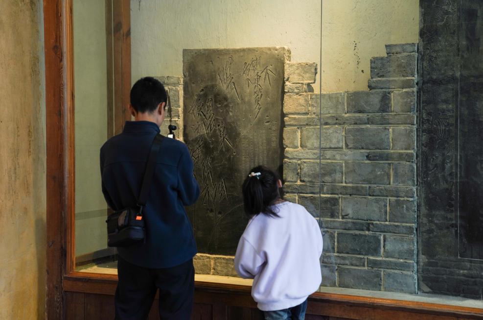 10月27日、重慶市奉節県の白帝城風景区で碑刻を見学する人々。(重慶=新華社記者/周佳誼)