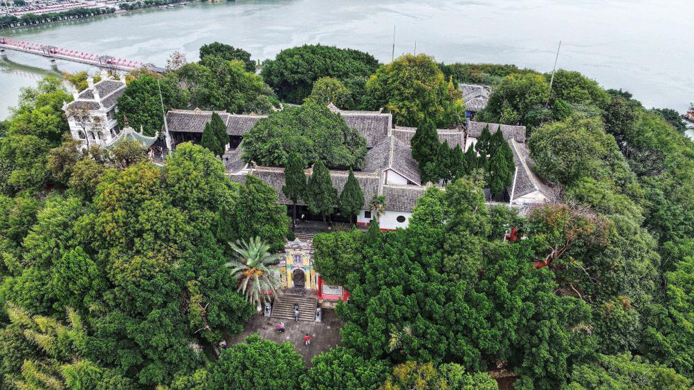 10月27日、空から見た重慶市奉節県の白帝城風景区。(ドローンから、重慶=新華社記者/劉潺)