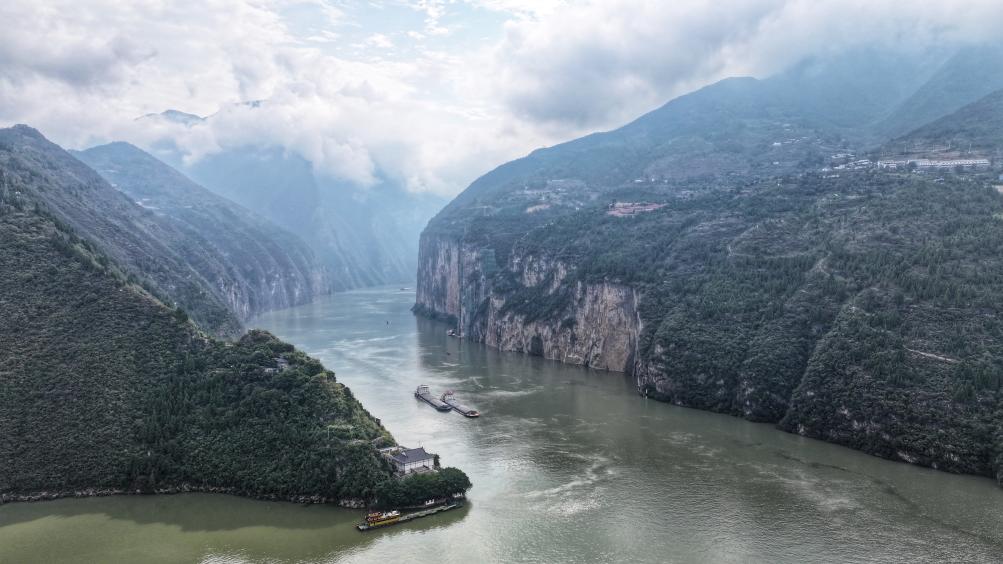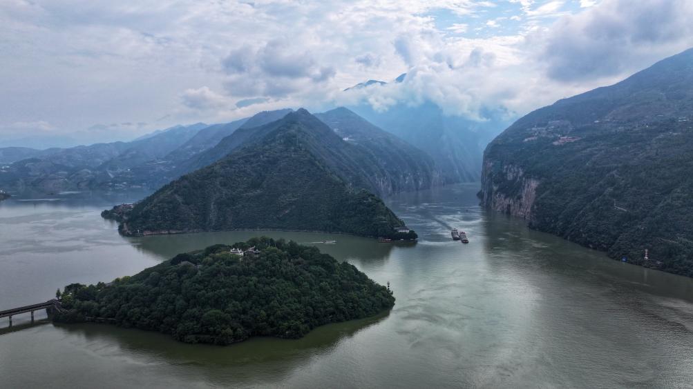 10月27日、重慶市奉節県瞿塘峡(くとうきょう)の風景。(ドローンから、重慶=新華社記者/劉潺)