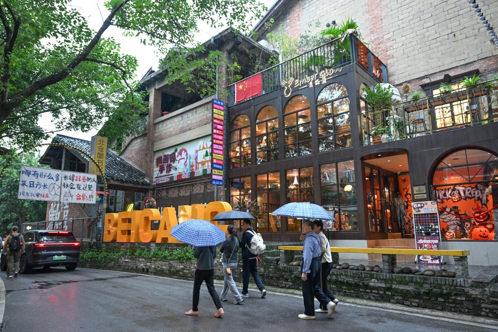 10月29日、重慶市の北倉文創街区を散策する観光客。(重慶=新華社記者/陳誠)