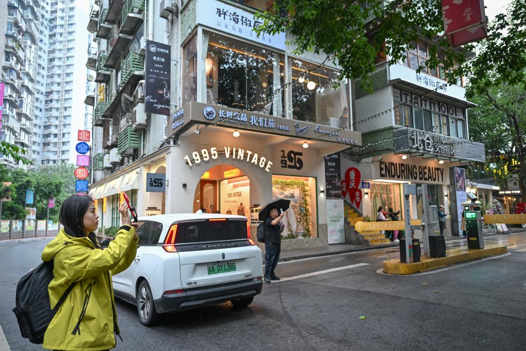 10月29日、重慶市の北倉文創街区で写真撮影する観光客。(重慶=新華社記者/陳誠)