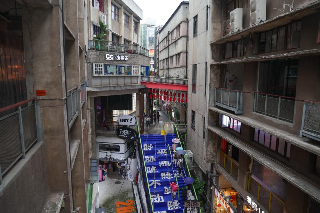 10月29日、重慶市渝中区の鵝嶺貳廠を散策する観光客。(重慶=新華社記者/黄偉)