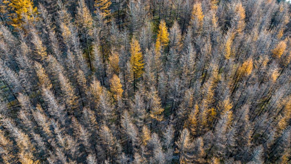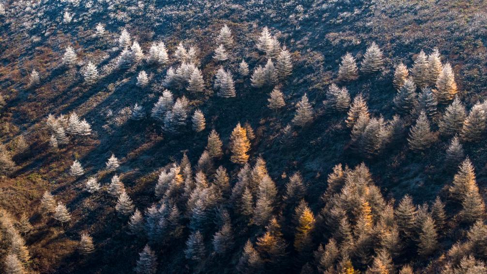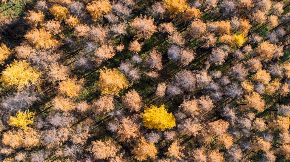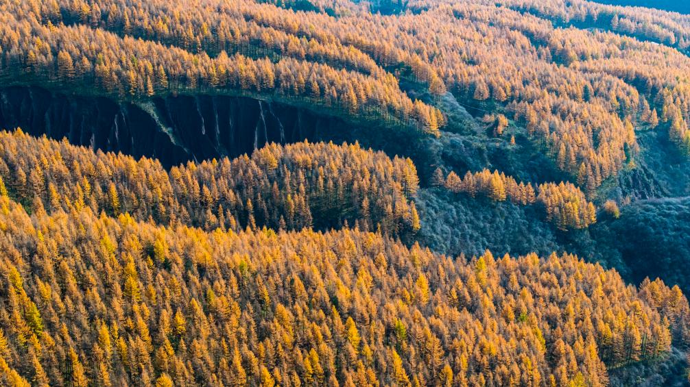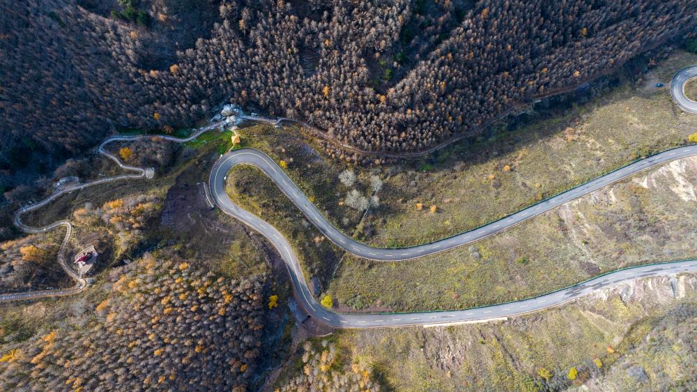 10月27日、固原市の六盤山に広がる秋景色。(ドローンから、固原=新華社記者/王鵬)