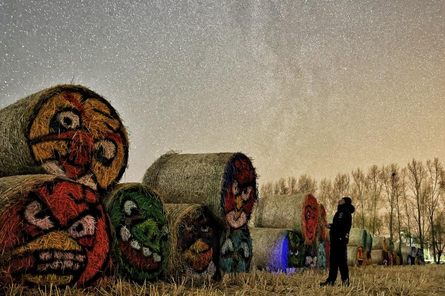 10月31日、黒竜江省伊春市の星空。(比較明合成写真、ハルビン=新華社配信/李佳星)