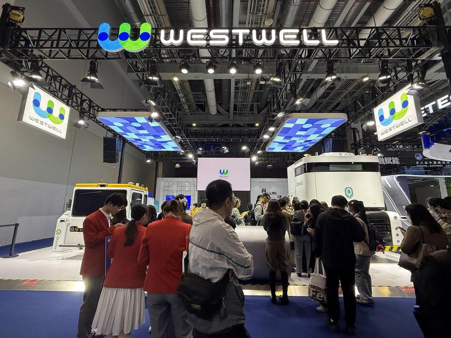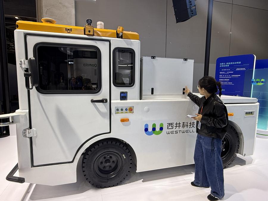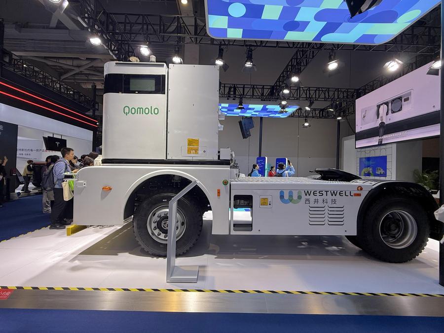 人工知能(AI)・無人運転技術開発企業の西井科技のブースでは、すでに中国や英国、タイ、アラブ首長国連邦(UAE)など28の国と地域で大規模に導入され、SF映画「流転の地球3(原題:流浪地球3)」にも登場する自動運転大型トラック「Q-Truck」が多くの来場者の目を引いた。新たにアップグレードした新エネルギー自動運転トラクターヘッド「Q-Tractor P40 Plus」も同様に関心を集めていた。