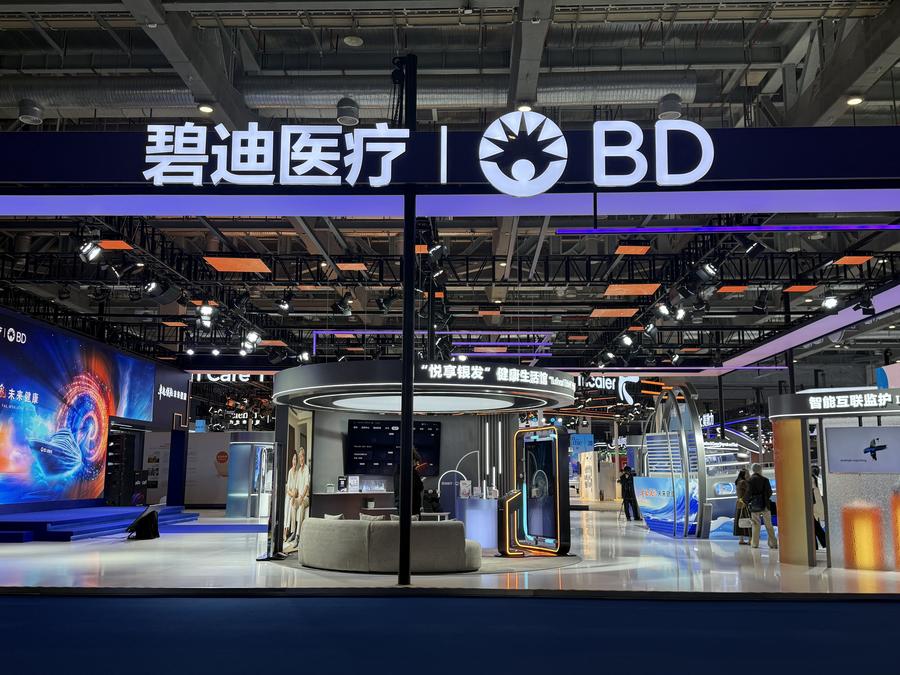 4日、米医療技術企業ベクトン・ディッキンソンのブース。(上海=新華社記者/方芸暁)