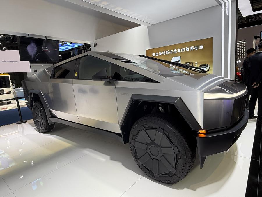 4日、米電気自動車(EV)大手テスラのピックアップトラック「サイバートラック」。(上海=新華社記者/常博深)