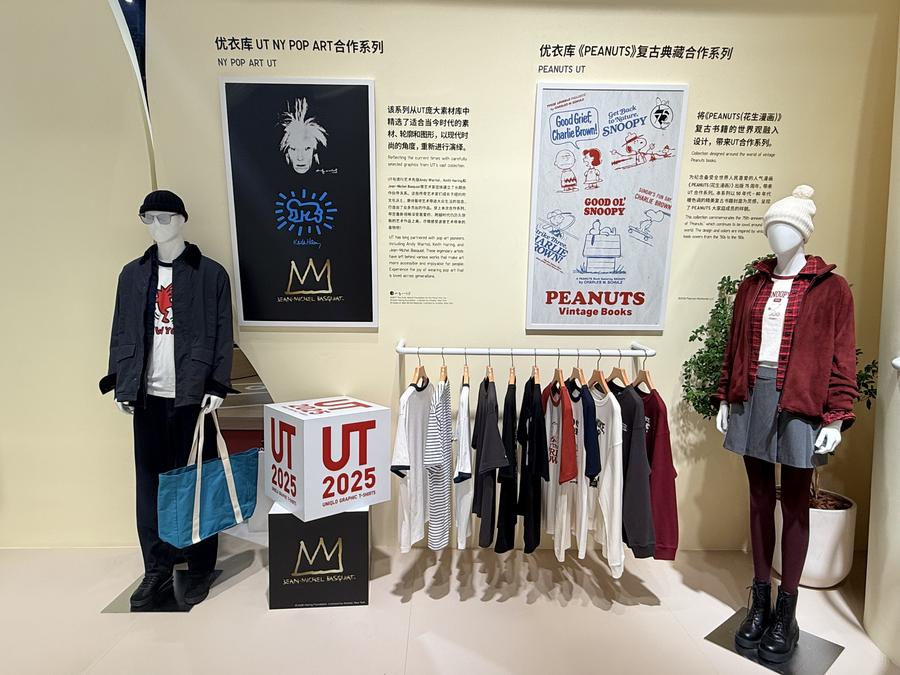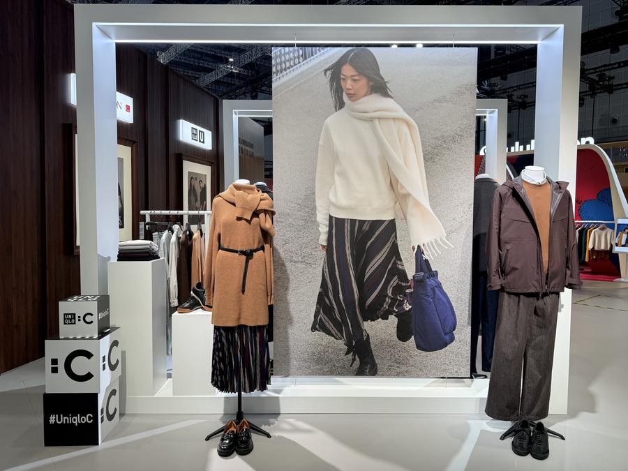 4日、ファッションブランド「ユニクロ」を展開するファーストリテイリングのブースの展示。(上海=新華社記者/常博深)