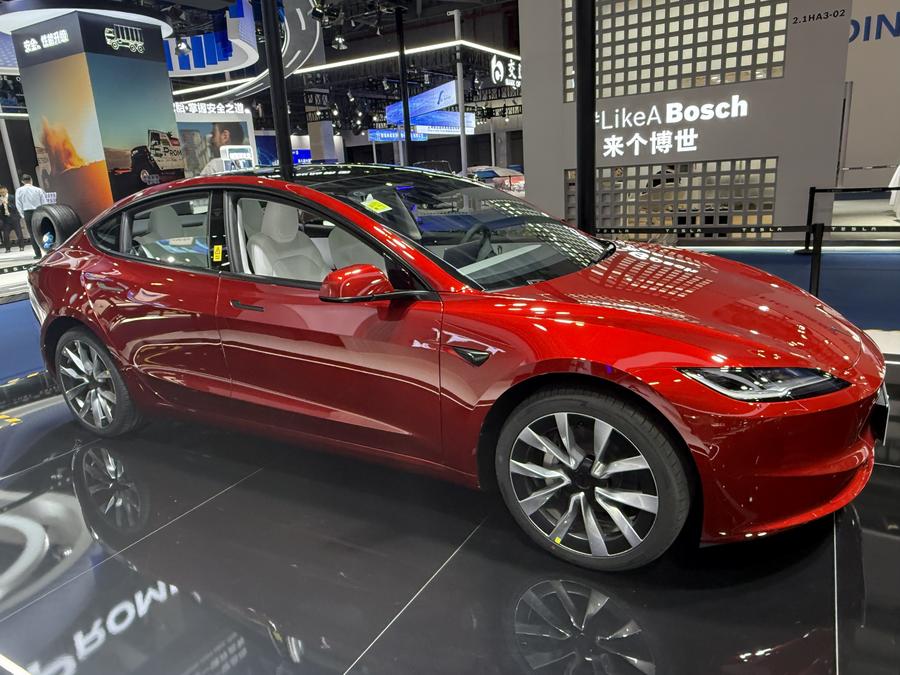 4日、米電気自動車(EV)大手テスラのセダンタイプのEV「モデル3」。(上海=新華社記者/常博深)