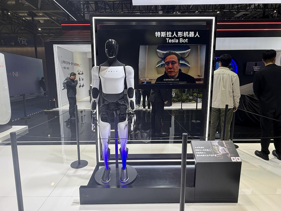 4日、米電気自動車(EV)大手テスラが開発した人型ロボット。(上海=新華社記者/常博深)