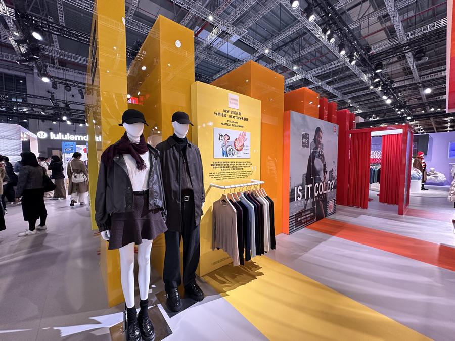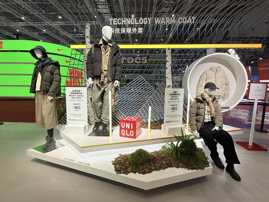 4日、ファッションブランド「ユニクロ」を展開するファーストリテイリングのブースの一角。(上海=新華社記者/常博深)