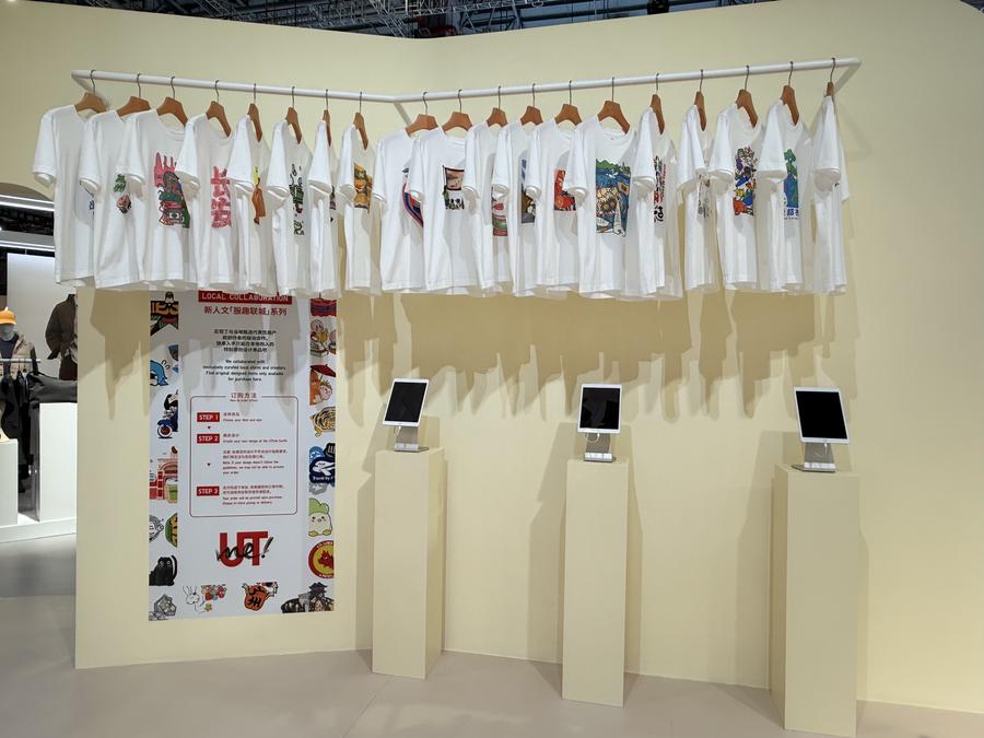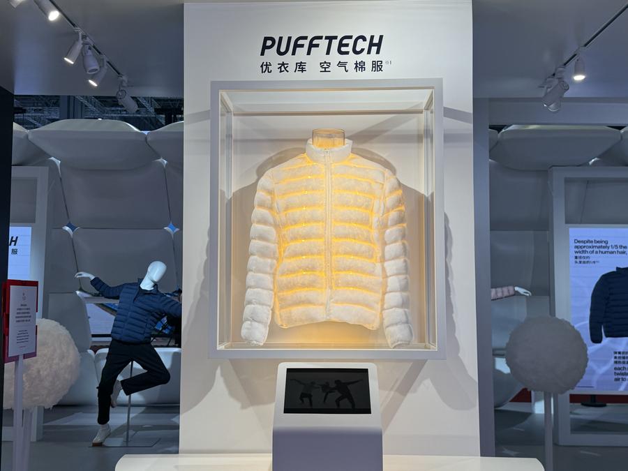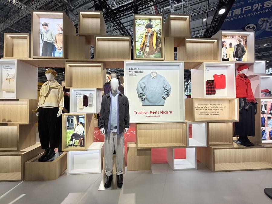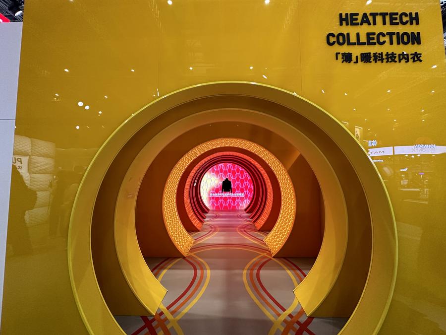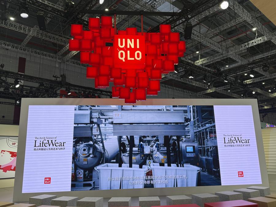 4日、ファッションブランド「ユニクロ」を展開するファーストリテイリングのブースの展示。(上海=新華社記者/方芸暁)