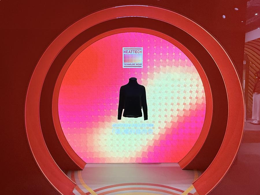 4日、ファッションブランド「ユニクロ」を展開するファーストリテイリングの展示品。(上海=新華社記者/方芸暁)