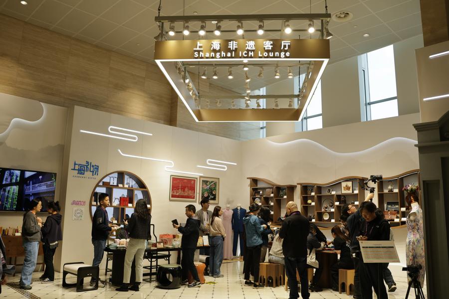 5日、上海無形文化遺産ラウンジを見学する来場者。(上海=新華社記者/藍建中)