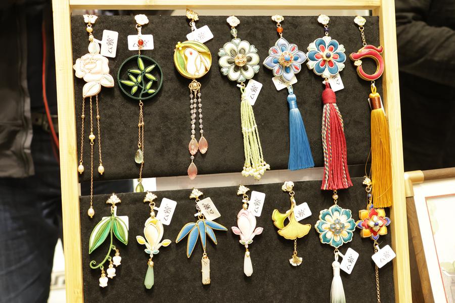 5日、栄慶堂(楊浦区)の香袋。制作技法は上海市の無形文化遺産に登録されている。(上海=新華社記者/藍建中)