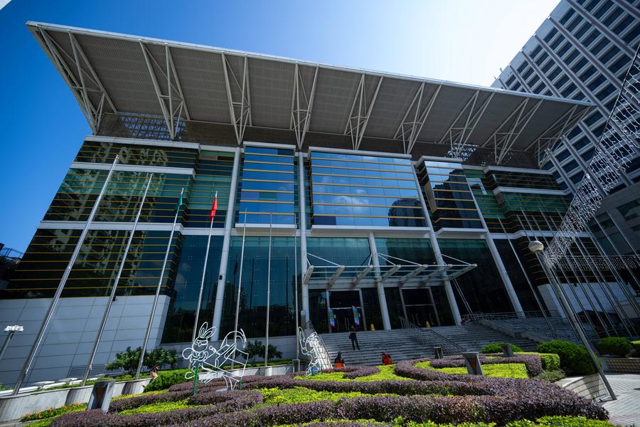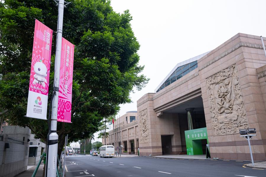 3日、第15回全国運動会で空手の会場となるマカオ総芸館(マカオフォーラム)。(マカオ=新華社配信/張金加)