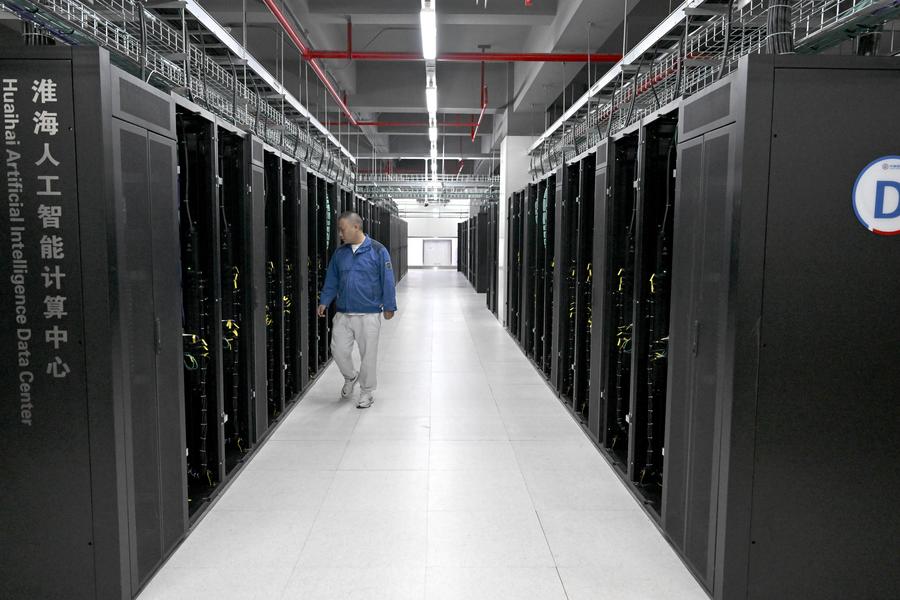 2日、宿州市計算力産業パークの淮海AIデータセンターで稼働するサーバー。(宿州=新華社記者/黄博涵)