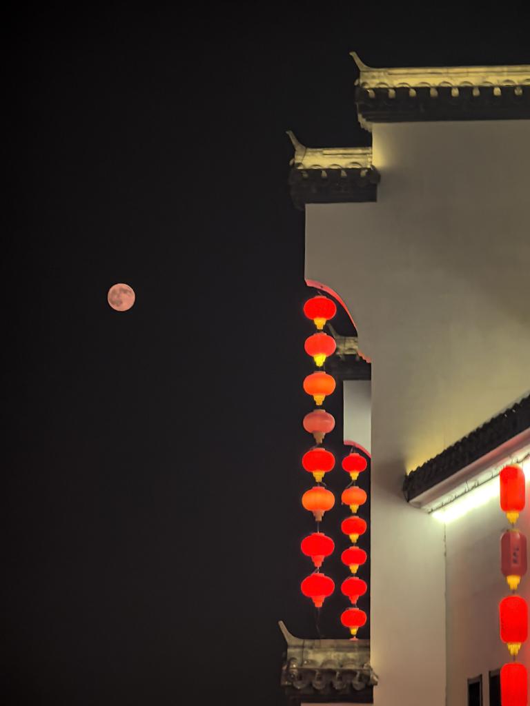 5日、江蘇省海安市の空に輝く満月。(海安=新華社配信/顧彬斌)