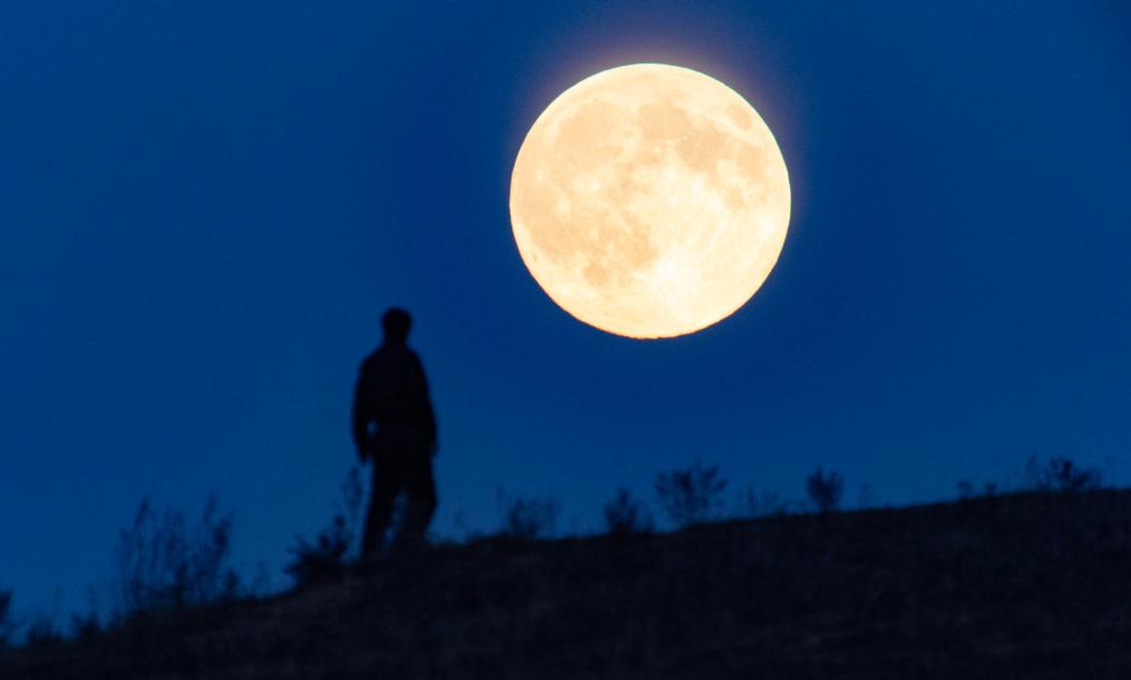 5日、内モンゴル自治区ヒンガン盟アルシャン市で輝く満月。(アルシャン=新華社記者/費茂華)