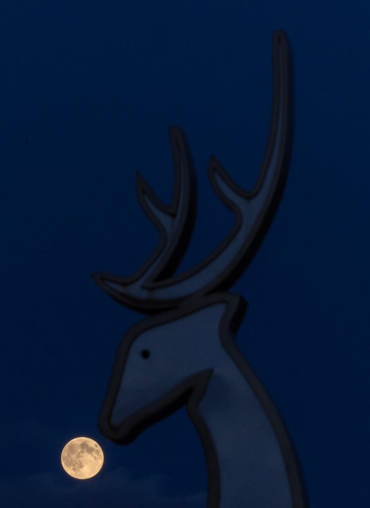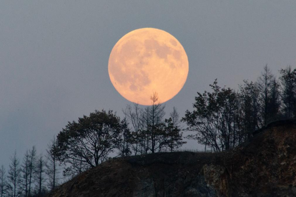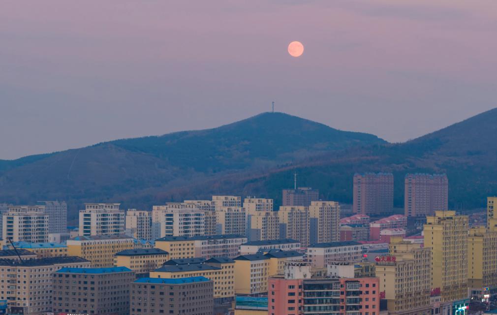 5日、黒竜江省富錦市で撮影した満月。(富錦=新華社配信/曲玉宝)