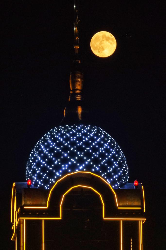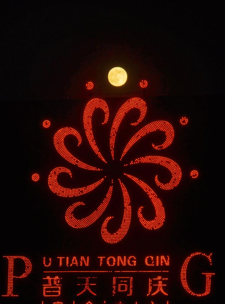5日、黒竜江省チチハル市の空に輝く満月。(チチハル=新華社配信/王勇剛)