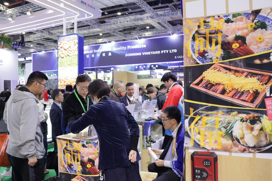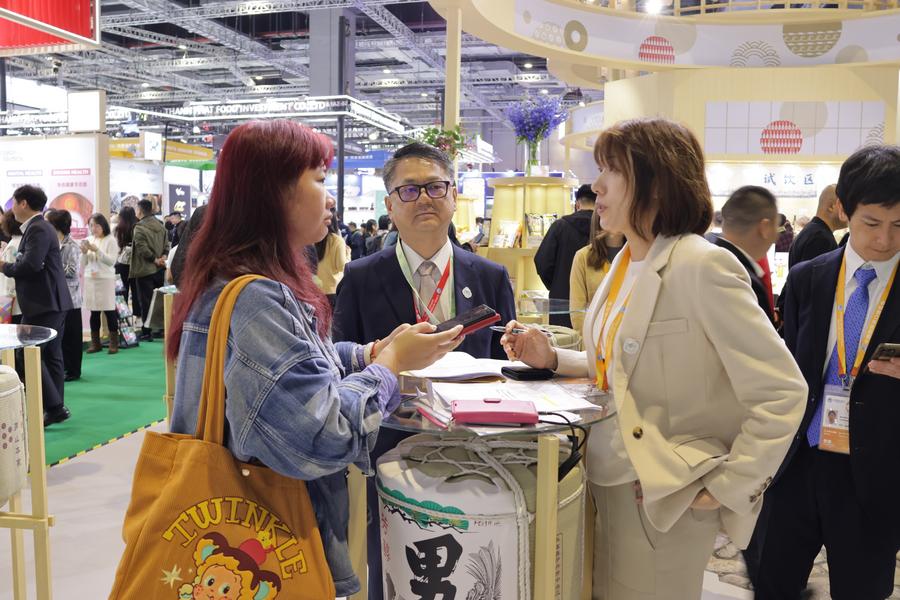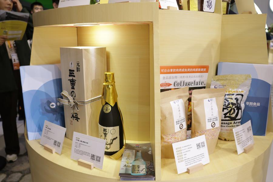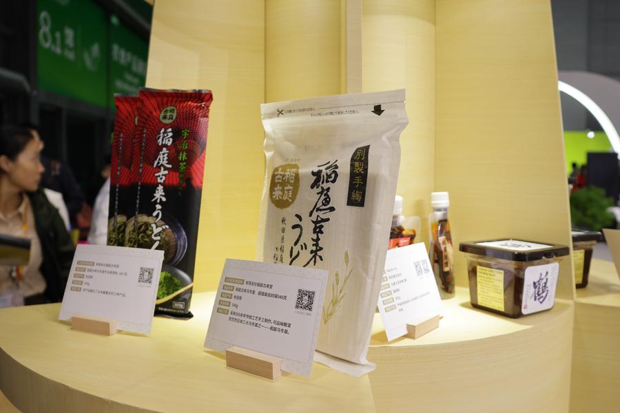 6日、ジェトロブースに並ぶ日本の食品。(上海=新華社記者/藍建中)