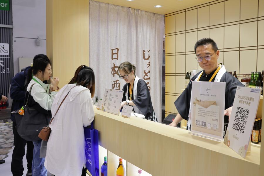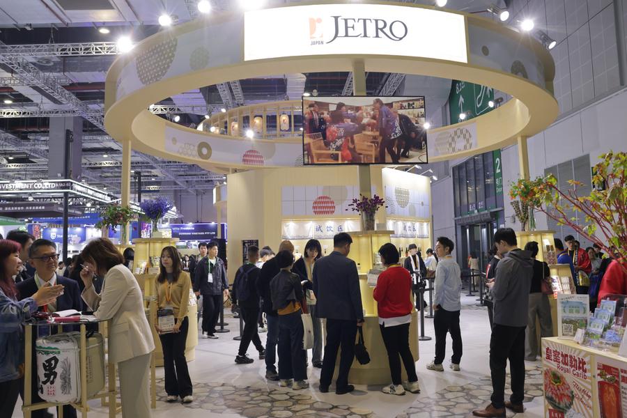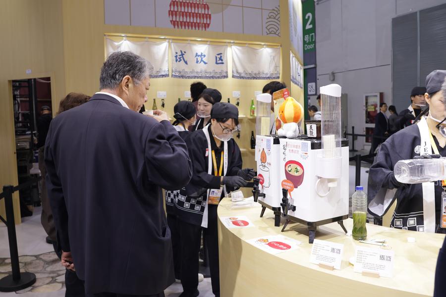 【新華社上海11月6日】中国上海市で5日、第8回中国国際輸入博覧会が開幕し、日本貿易振興機構(ジェトロ)は、食品メーカー47社と酒造メーカー101社を取りまとめて出展した。ブースには多くの来場者が訪れ、試食や試飲を体験した。