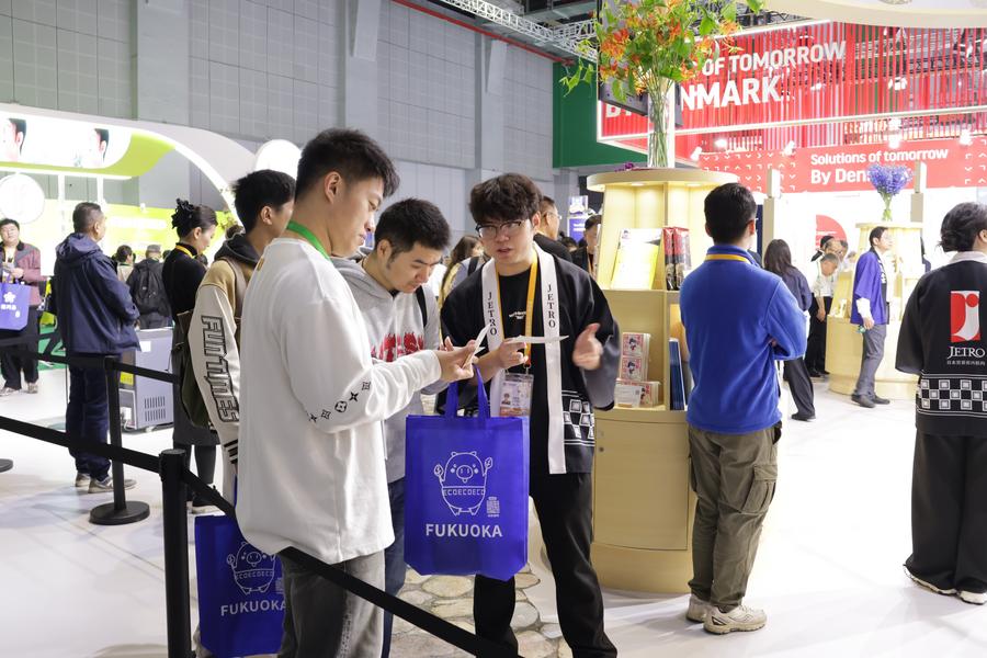 6日、ジェトロが日本企業を取りまとめ出展したブース「JAPAN MALL(ジャパンモール)」を訪れた来場者。(上海=新華社記者/藍建中)