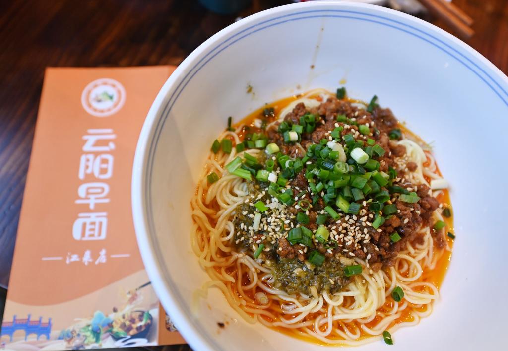 4日、雲陽早麺店のジャージャン麺。雲陽早麺は雲陽県が打ち出した麺食ブランドの一つ。(重慶=新華社記者/肖瀟)