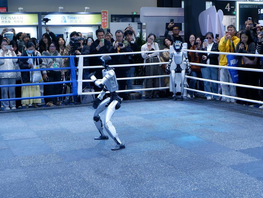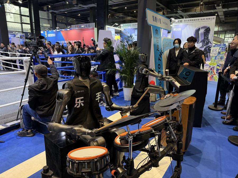 【新華社烏鎮11月8日】中国浙江省桐郷市烏鎮で6日、2025年世界インターネット大会(WIC)烏鎮サミットの重要イベント「インターネットの光」博覧会が開幕した。人工知能(AI)技術を多分野に融合させた「AI+(プラス)」の展示に力に入れており、七つのテーマエリアに多様な機能を持つロボットが集結。ボクシングや音楽演奏などのパフォーマンスが来場者の関心を引いている。