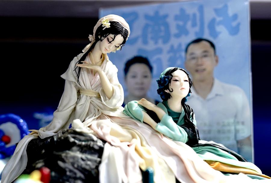 7日、輸入博の遼寧省エリアで撮影した無形文化遺産に登録されている面塑(しんこ細工)「遼南劉氏面塑」の作品。(上海=新華社記者/張建松)