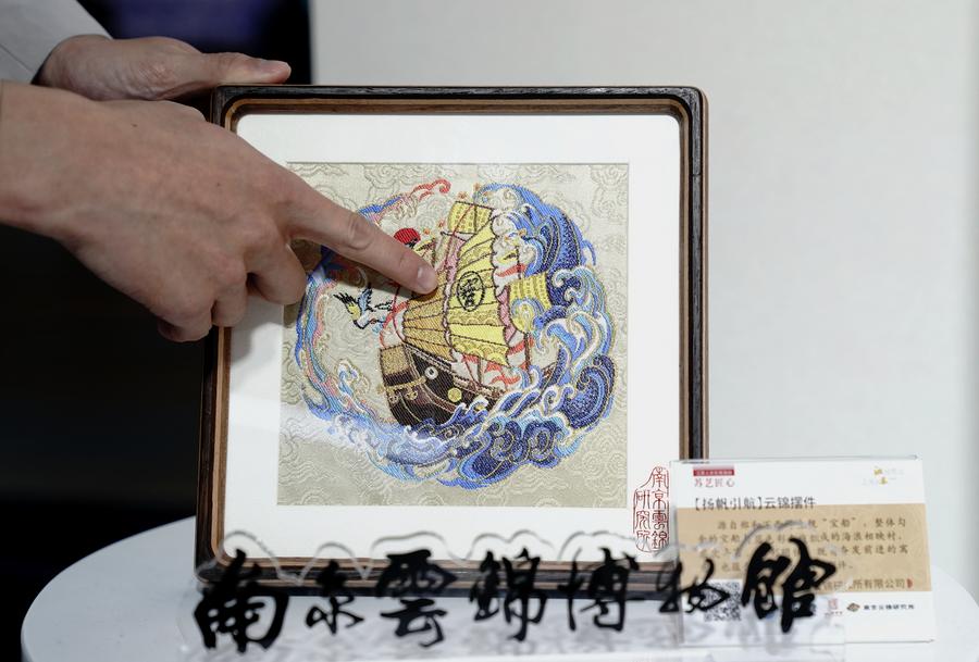 7日、輸入博の江蘇省エリアで紹介される南京雲錦博物館の展示品。(上海=新華社記者/張建松)